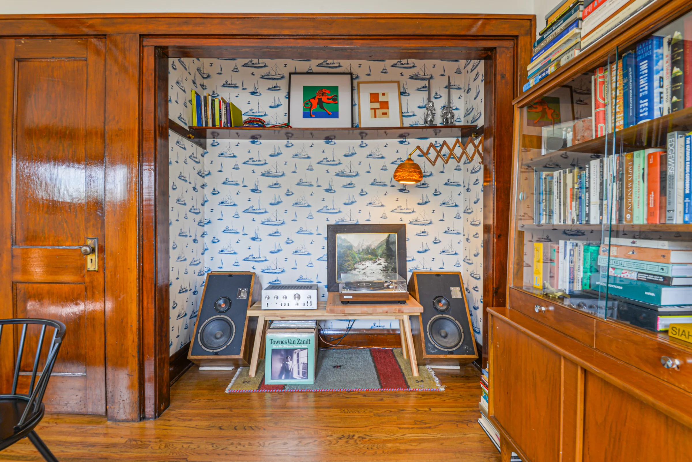 Formality was no slouch despite her compactness and OG-efficiency status: entry upon living with piano windows, arched opening to formal dining and built in office/Hifi niche, walking into galley kitchen with linen bath and bedroom to back the caboose.