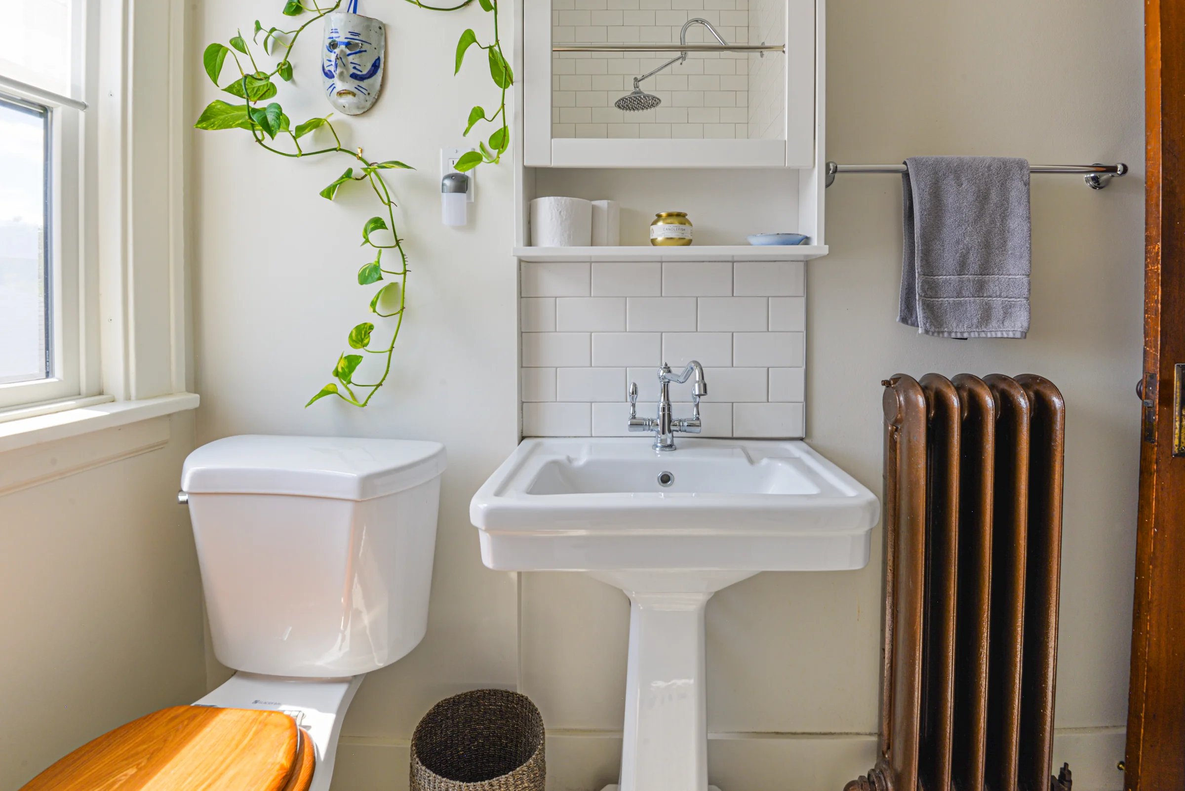 The one photographed below just had a Design in Rare Form freshen up- adding nautical wall covering and retooling the lighting and radiator tone amended from HGTv gray to dark bronze.