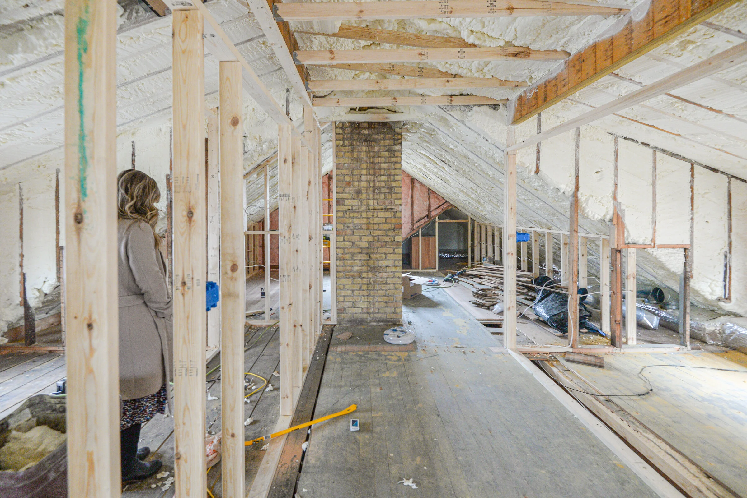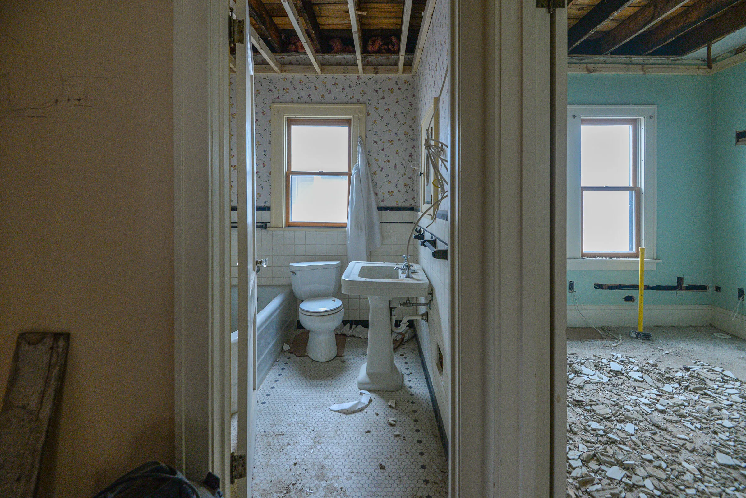 The Brekken was unique in that it had original dormers, the one below became an french door walk-in that the McGlynns will be building to suit this winter. Anya Kordonowy our esteemed Chief of Staff provides scale for this original 1921 dormer.