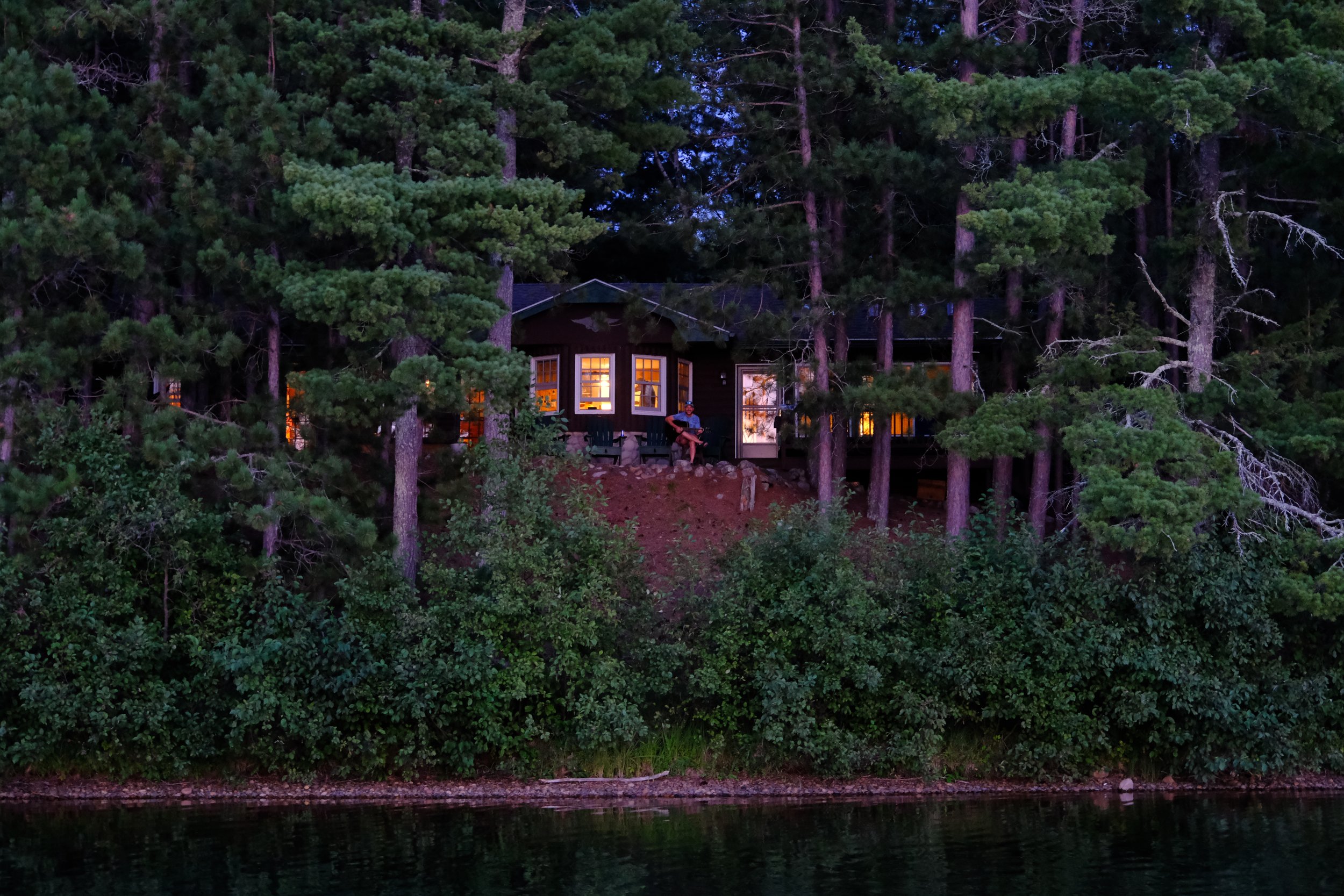 one of our guests from St Louis took in the environments’ serenity to learn guitar on his week at Pinepoint, the cobblestone terrace provides hours of natural solitude overlooking the private shoreline