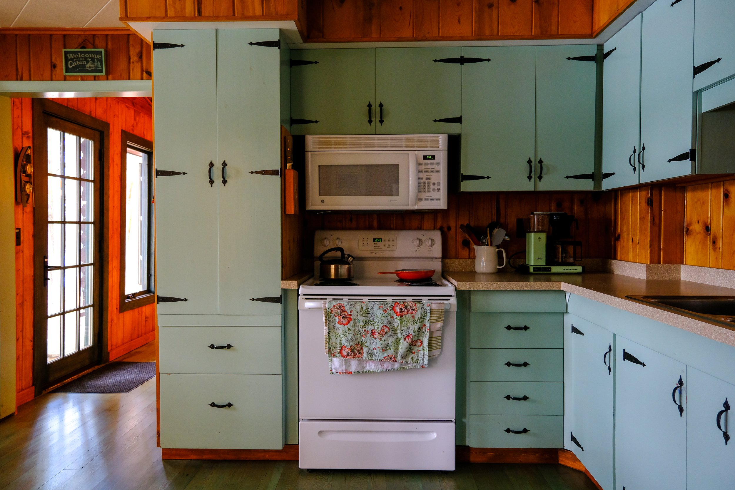 we chose an exotic finish for the cabin of a dye stain in jade evergreen that gives the entire space a pop of color while staying the vein of the northwoods