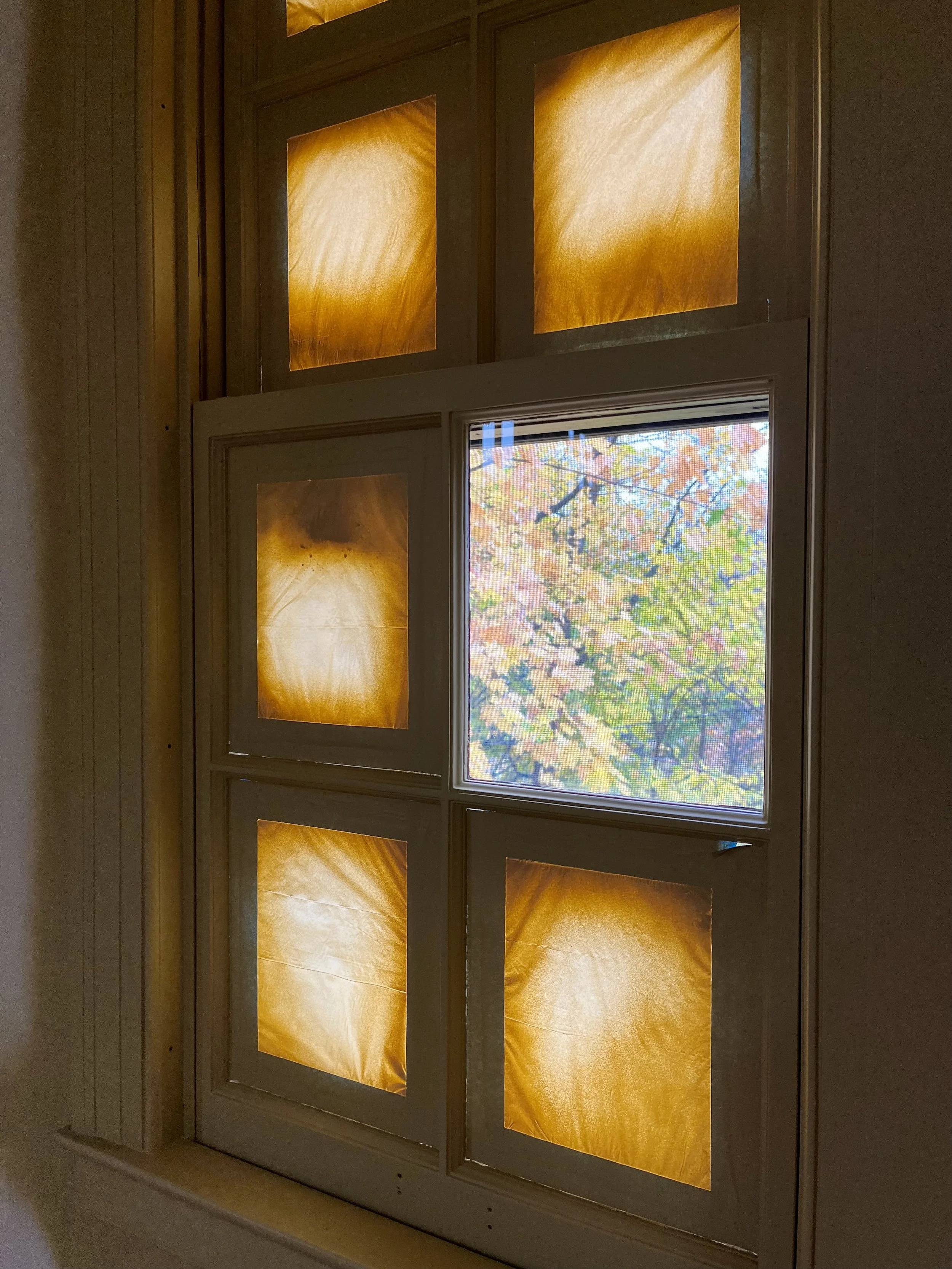Yellow ochre trim plays off the golden cloak of autumn outside.