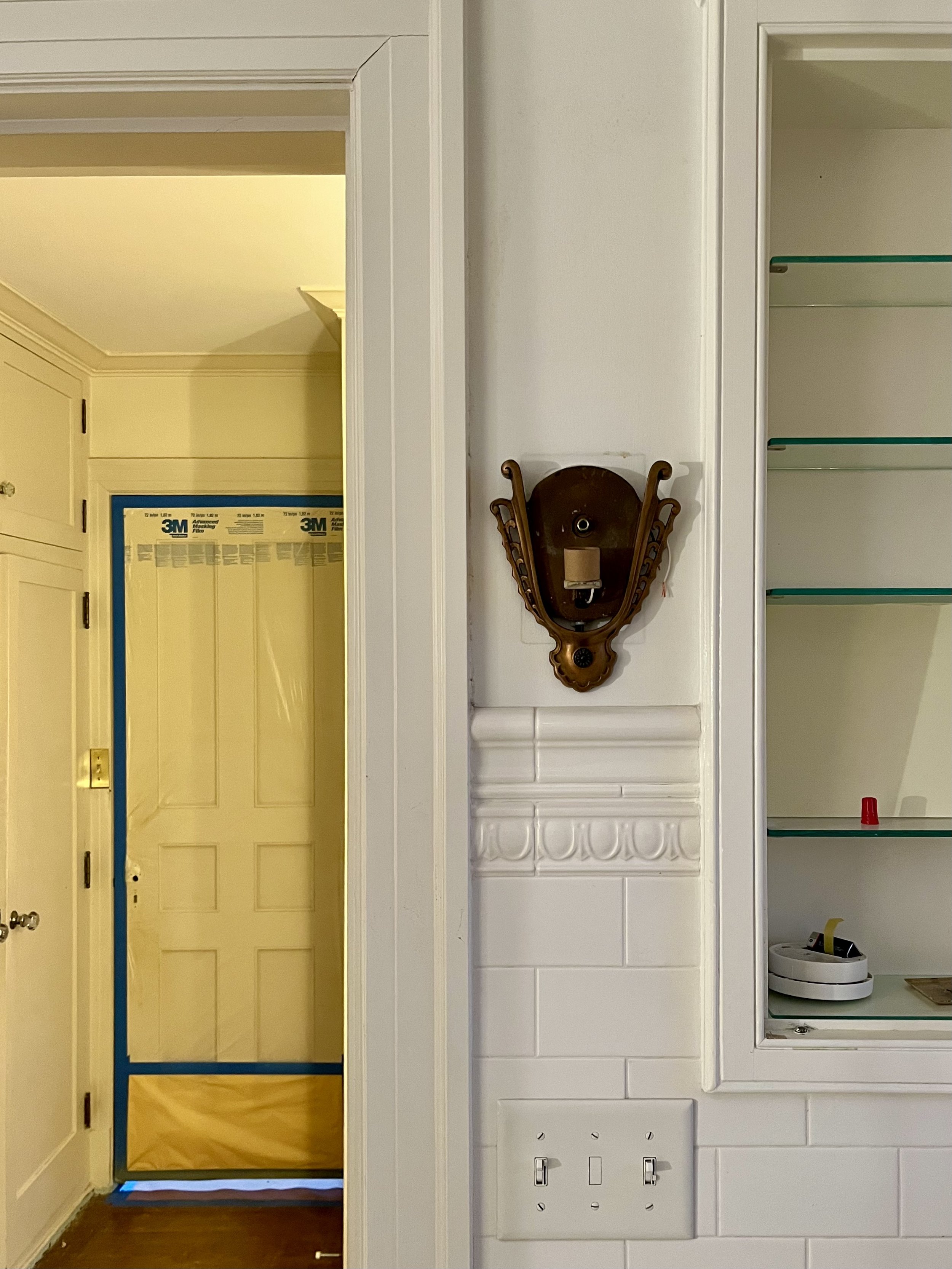 A trio of vintage pearl slip shade sconces sourced from our friends at Architectural Antiques will wash the space with the softest glow.