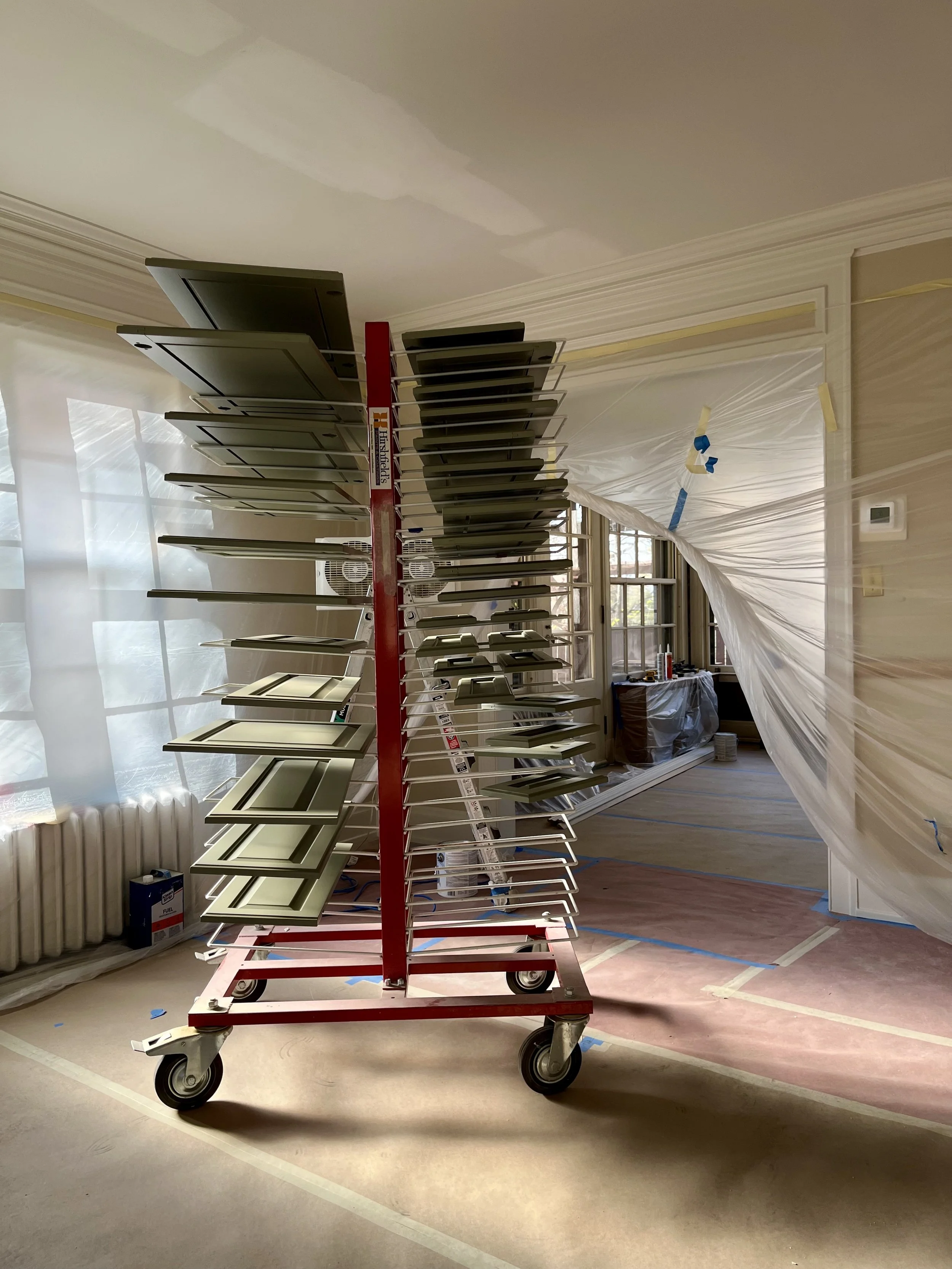 Our top-to-toe scope of work includes millwork restoration, wainscoting, trim work, refinished hardwood floors, paper, paint, enamel, and vintage lighting throughout, plus a kitchen refresh with stone counters and white oak shelving, enameled cabinetry, new appliances, plumbing fixtures, hardware, and a custom shaker-style breakfast nook. The result is a spirited revival of the Cunard’s fine craftsmanship and Jazz Age glamor, executed with Rare Form precision by project lead Beverly and our team of specialist trades.