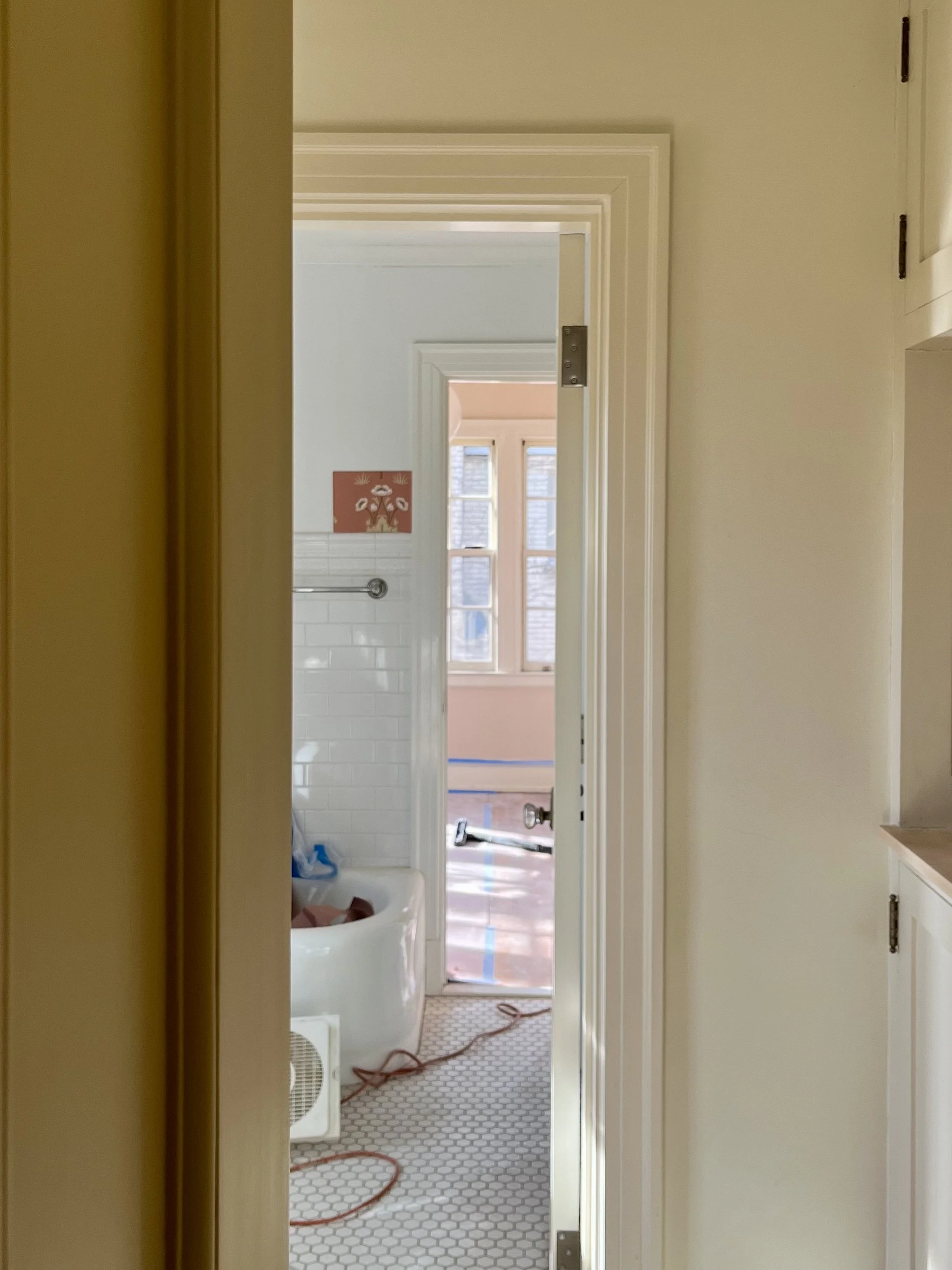 The colorful kids bath, also ensuite, will get a joyous paper and paint scheme.