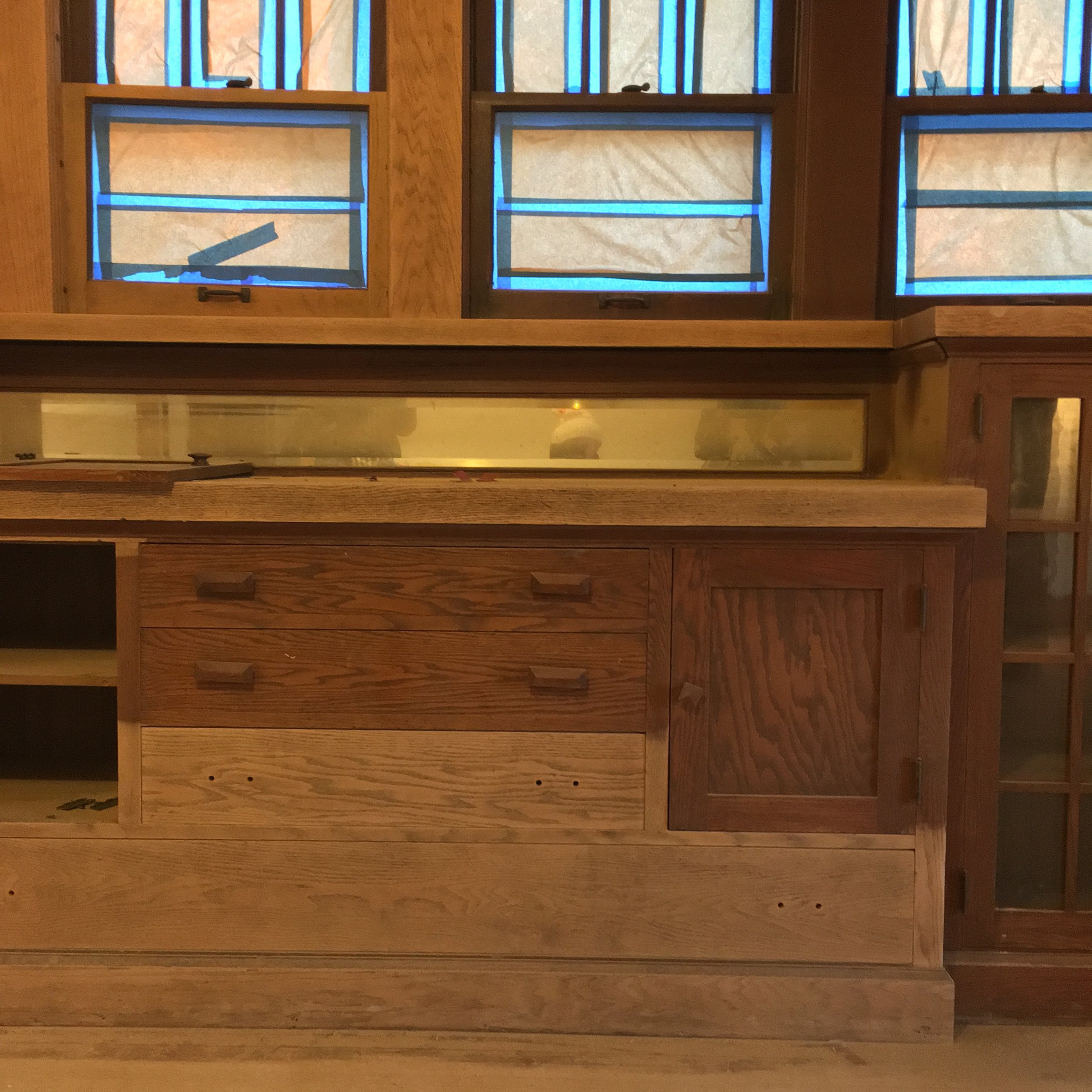 Once stripped to bare,the millwork received an alcohol bath followed by a stain cocktail proprietary to Colossus.